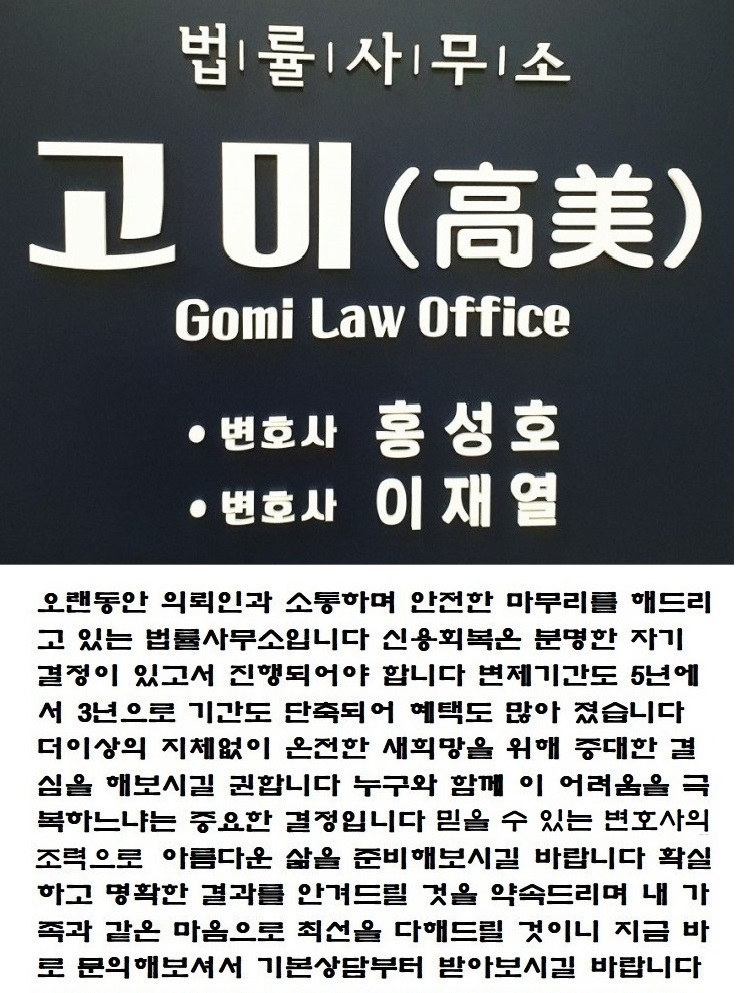 개인회생과 개인파산에 대해 검색하는 사람들은 얼마나 마음이 답답할까요? 뜻대로 되지 않는 것이 세상일입니다. 경제활동을 하는 사람에게는 언제든지 생길 수 있는 현실입니다. 의외로 많은 분들이 활용하고 있는 수원개인회생과 수원개인파산은 정말로 괜찮은 시스템입니다. 성실하게 살았다고 자부하는데도 곤경에 처했다면 다시 도전할 수 있는 기회를 주는 것입니다. 해결하고자 노력한다면 죽으란 법은 없습니다. 하늘이 무너져도 쏫아날 구멍있다는 속담이 사돈남말이 아닙니다. 이제 걱정하지 말고 해법을 찾으십시오. 우리는 각종 채무로부터 해방될 수 있는 기회를 주는 개인회생과 개인파산제도가 잘 갖춰져있는 선진국 대한민국에 살고 있습니다.